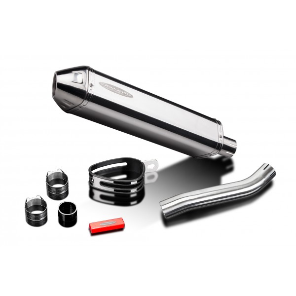 - This set includes - Delkevic silencer with a removable baffle, link pipe, clamps, and strap.
