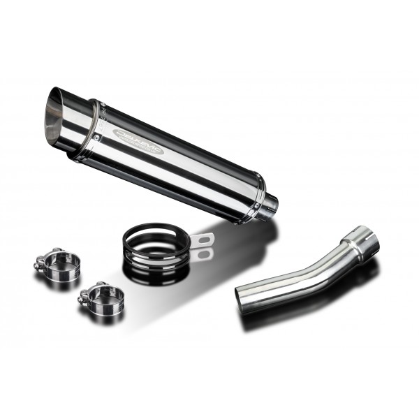• This set includes - Delkevic silencer with a removable baffle, link pipe, strap, and clamps.