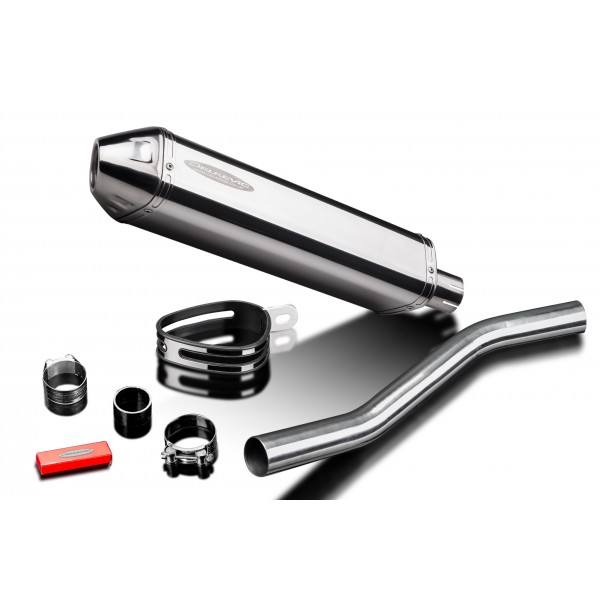 • This set includes - Delkevic silencer with a removable baffle, link pipe, clamp, strap, and gasket.