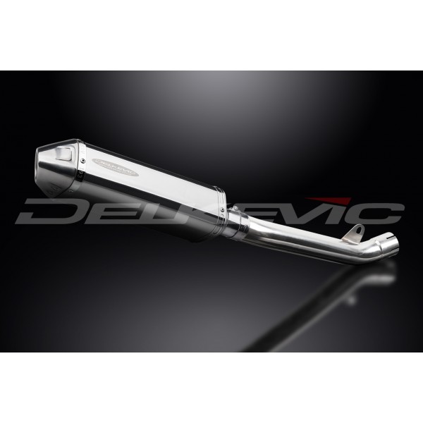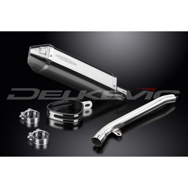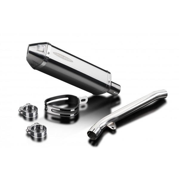 • This set includes - Delkevic silencer with a removable baffle, link pipe, strap, and clamps.