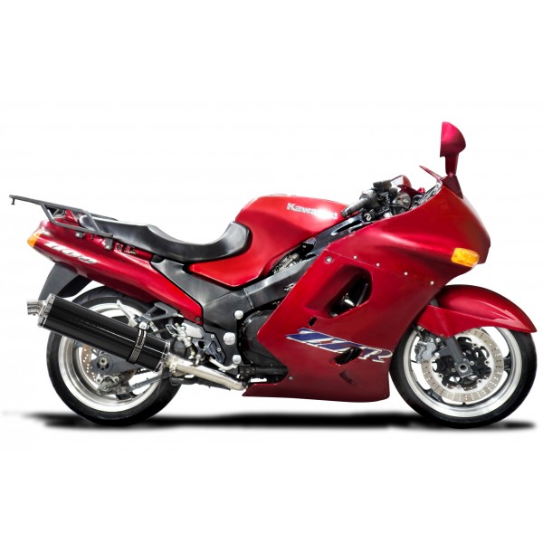 KAWASAKI ZZR1100 1990-2001 4-1 EXHAUST SYSTEM 450mm CARBON OVAL BSAU SILENCERS