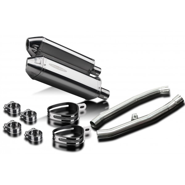 • This set includes - Delkevic silencers with removable baffles, link pipes, clamps, and straps.