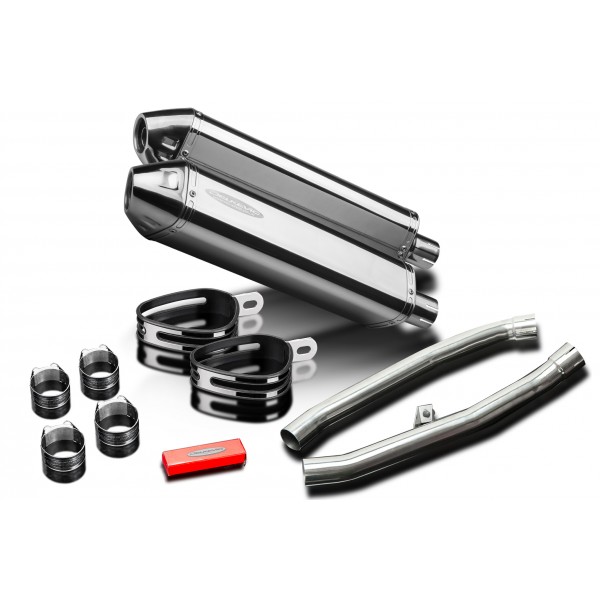 • This set includes - Delkevic silencers with removable baffles, link pipes, clamps, and straps.