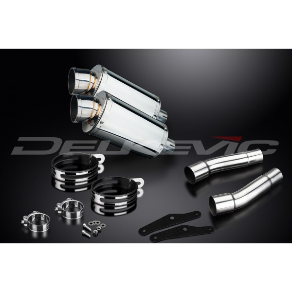 • This set includes - Delkevic silencers with removable baffles, link pipes, silencer straps, brackets, clamps, and fixings.