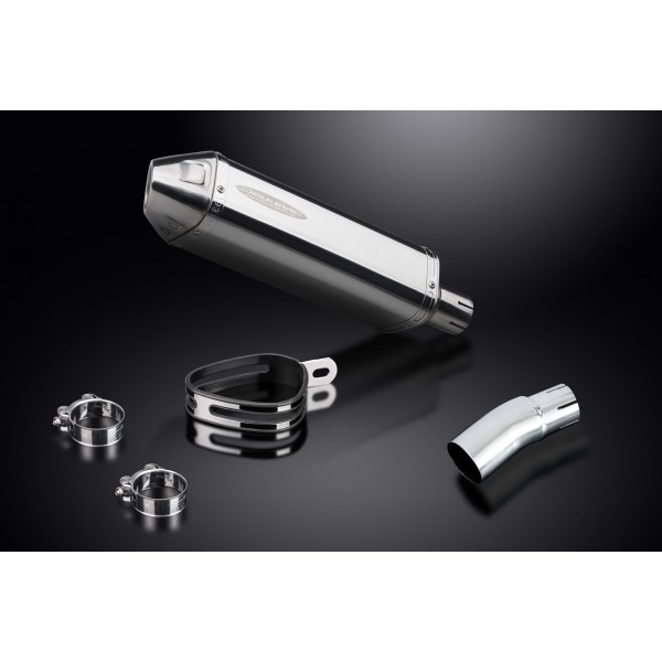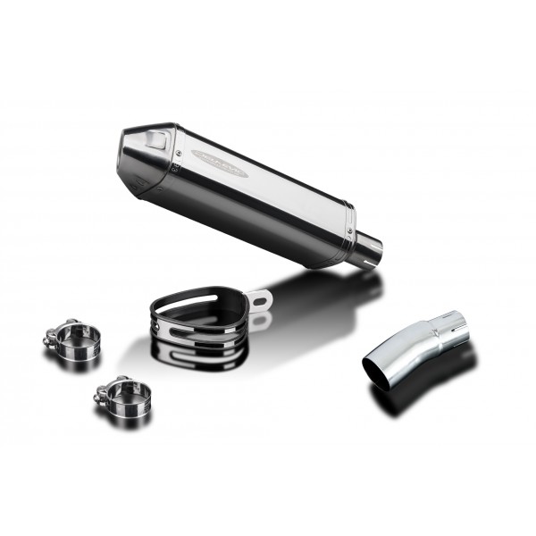 • This set includes - Delkevic silencer with a removable baffle, link pipe, strap, and clamps.