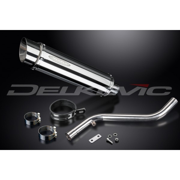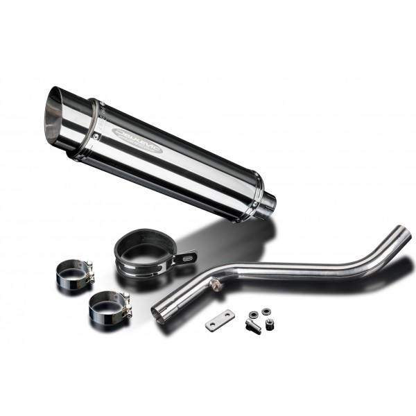 • This set includes - Delkevic silencer with a removable baffle, link pipe, strap, clamps, hex head bolt, cap screw, washers, lock nuts, and offset drop bracket.