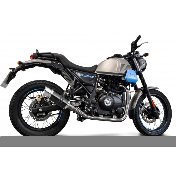 Royal Enfield Scram 411 2022-24 Full Exhaust System 200mm Round Carbon Silencer
