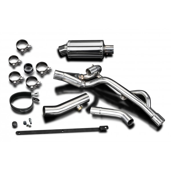 • This set includes - Delkevic silencer with a removable baffle, link pipes, strap, clamps, and fixings.