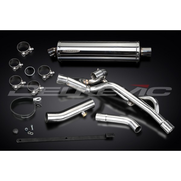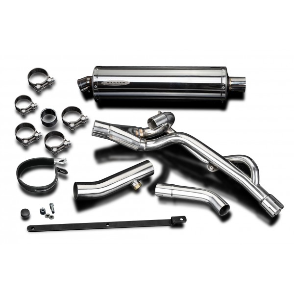 • This set includes - Delkevic silencer with a removable baffle, link pipes, strap, clamps, and fixings.