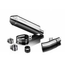 • This set includes - Delkevic silencer with a removable baffle, link pipe, strap, clamps, bracket, spacer, washers, cap screws, and nyloc nut.
