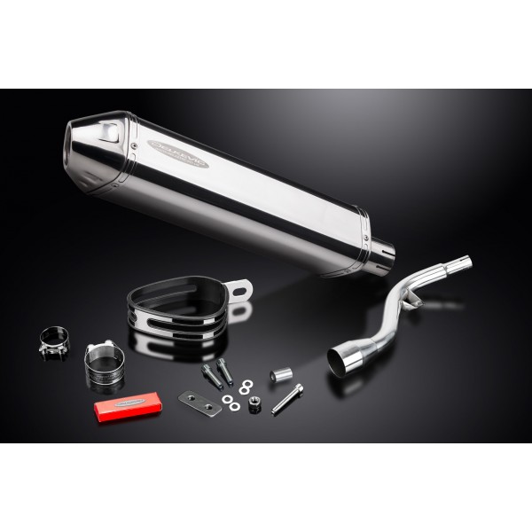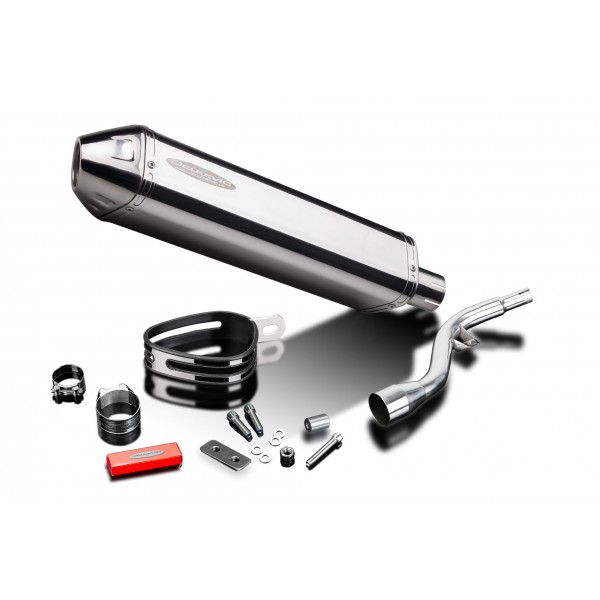 • This set includes - Delkevic silencer with a removable baffle, link pipe, strap, clamps, bracket, spacer, washers, cap screws, and nyloc nut.