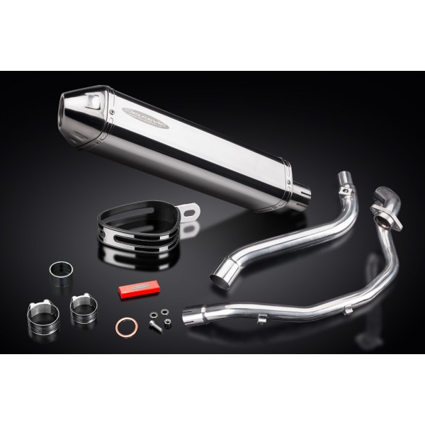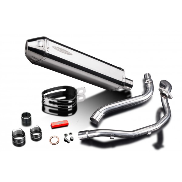 • This set includes - Delkevic down pipe, link pipe, Delkevic silencer with a removable baffle, strap, clamps, spacers, cap screws, nyloc nut, and gaskets.