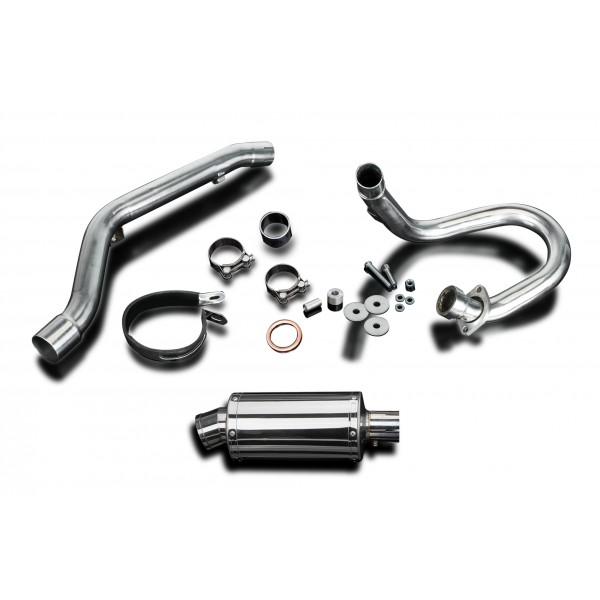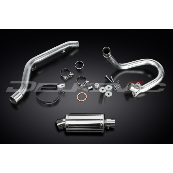 • This set includes - Delkevic down pipe, link pipe, Delkevic silencer with a removable baffle, strap, clamps, spacers, cap screws, nyloc nut, and gaskets.
