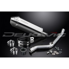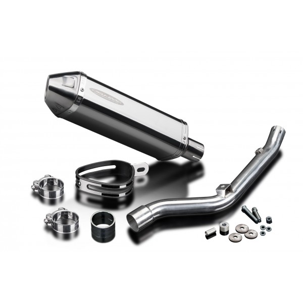 • This set includes - Delkevic silencer with a removable baffle, link pipe, strap, clamps, gasket, washers, spacers, cap screws, and nyloc nut.