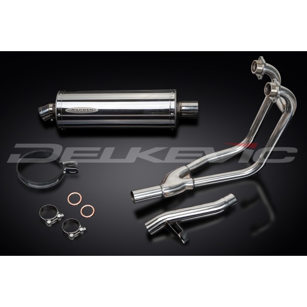 SUZUKI GS500 E/F 1989-2009 FULL 2-1 EXHAUST SYSTEM 350mm STAINLESS OVAL SILENCER