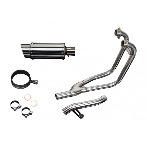 • This set includes - Delkevic down pipes, link pipe, silencer with a removable baffle, strap, clamps, and gaskets.