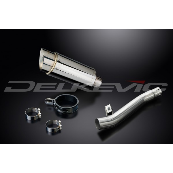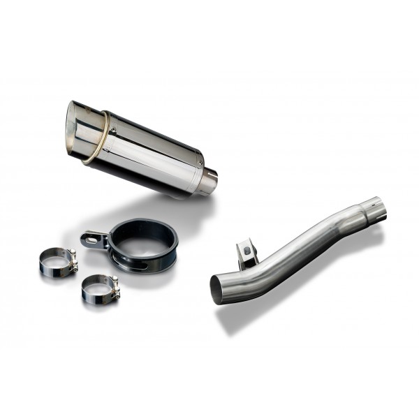 • This set includes - Delkevic silencer with a removable baffle, link pipe, strap, and clamps.