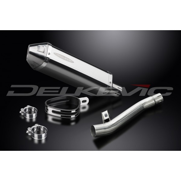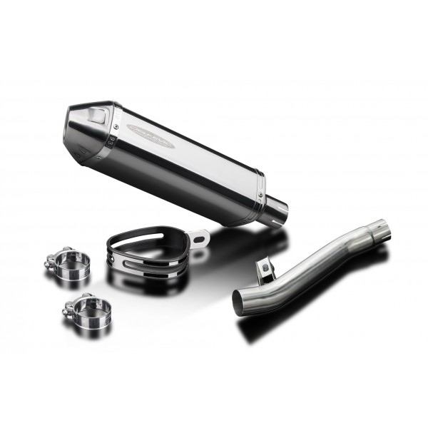 • This set includes - Delkevic silencer with a removable baffle, link pipe, strap, and clamps.