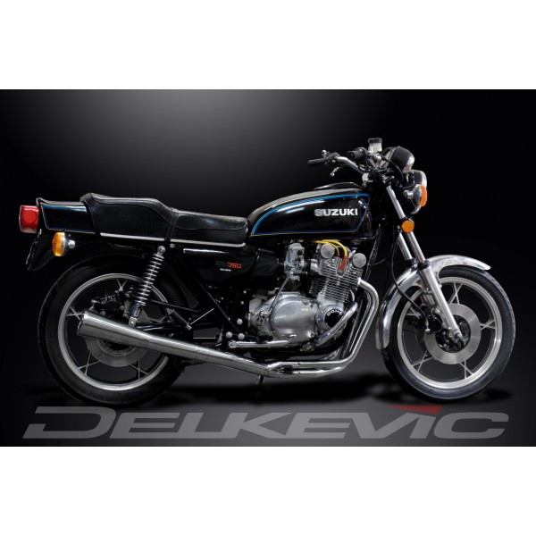 SUZUKI GS750 1977-79 FULL 4-1 STAINLESS STEEL EXHAUST CLASSIC MEGAPHONE SILENCER