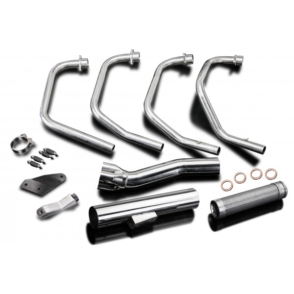 - This set includes - Delkevic down pipes and collector, Classic style silencer with a removable baffle, bracket, clamp, and fixings.