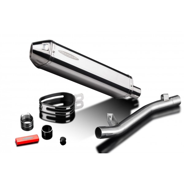 • This set includes - Delkevic silencer with a removable baffle, link pipe, strap, and clamp.
