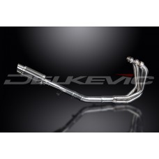 • This set includes - Delkevic down pipes, link pipe, silencer with a removable baffle, strap, clamps, gaskets, and spring hooks.