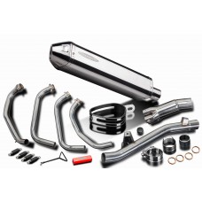 • This set includes - Delkevic down pipes, link pipe, silencer with a removable baffle, strap, clamps, gaskets, stand stop rubber, and spring hooks.
