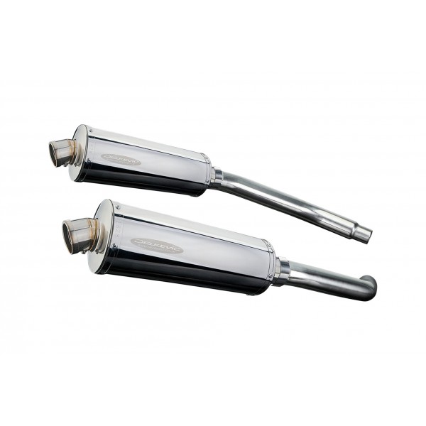 - This set includes - Delkevic silencers with a removable baffle, link pipes, silencer straps, gaskets, and clamps.
