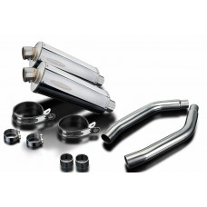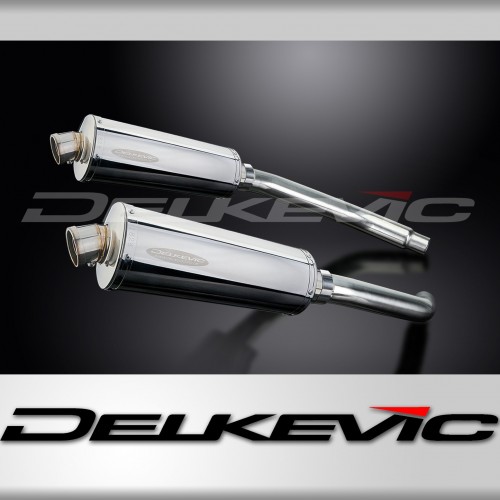 • This set includes - Delkevic silencers with a removable baffle, link pipes, silencer straps, gaskets, and clamps.