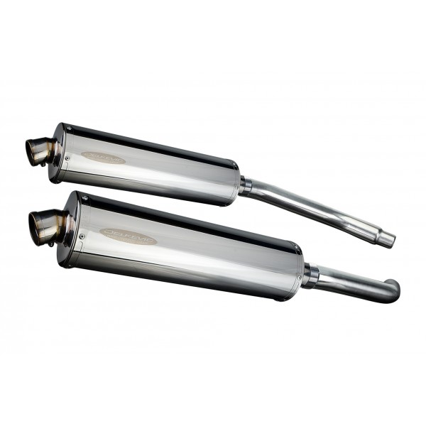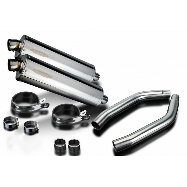 • This set includes - Delkevic silencers with a removable baffle, link pipes, silencer straps, gaskets, and clamps.