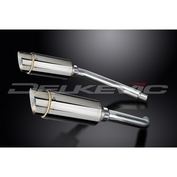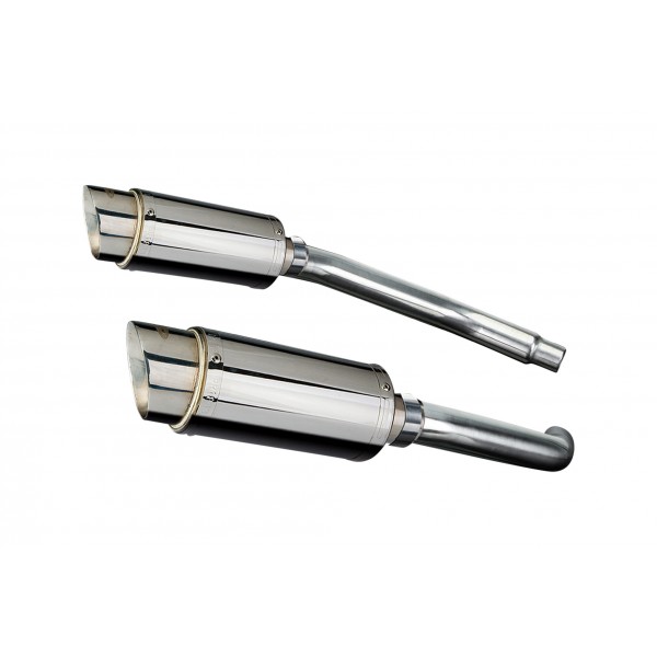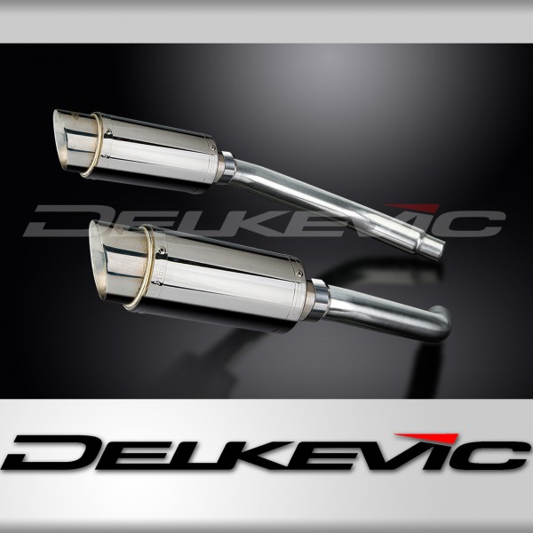 • This set includes - Delkevic silencers with a removable baffle, link pipes, silencer straps, gaskets, and clamps.