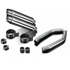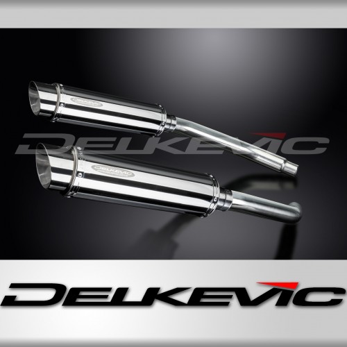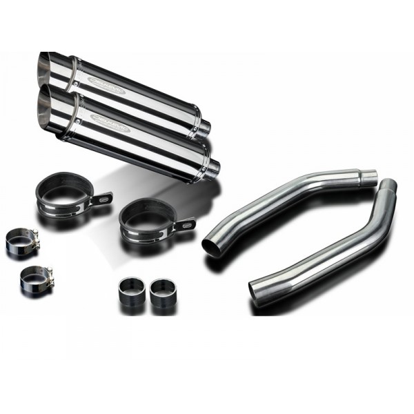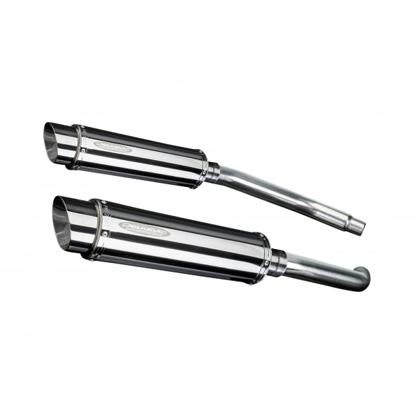 • This set includes - Delkevic silencers with a removable baffle, link pipes, silencer straps, gaskets, and clamps.