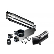 • This set includes - Delkevic silencer with a removable baffle, link pipe, clamps, and strap.