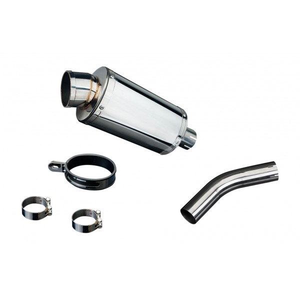 • This set includes - Delkevic silencer with a removable baffle, link pipe, strap, and clamps.