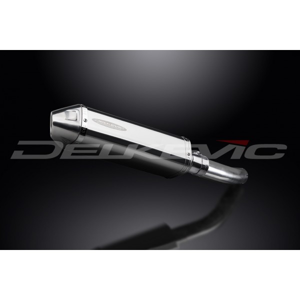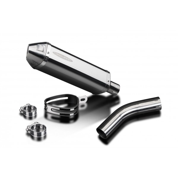 • This set includes - Delkevic silencer with a removable baffle, link pipe, strap, and clamps.