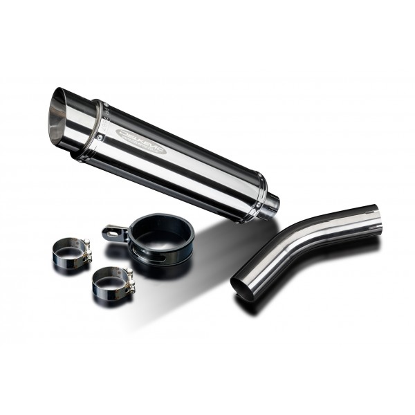 • This set includes - Delkevic silencer with a removable baffle, link pipe, strap, and clamps.