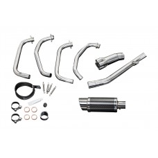 • This set includes - Delkevic down pipes, link pipe, silencer with a removable baffle, strap, clamps, gaskets, and spring hooks.