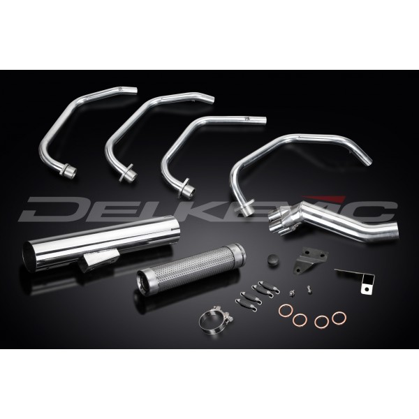 • This set includes - Delkevic down pipes, Classic style silencer with a removable baffle, clamp, gaskets, brackets, stand stop rubber, spring hooks, nyloc nuts, washers, and cap screws.