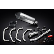 • This set includes - Delkevic down pipes, link pipe, silencer with a removable baffle, strap, clamps, gaskets, and spring hooks.