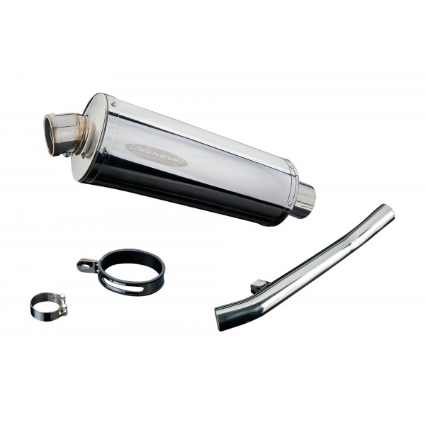 • This set includes - Delkevic silencer with a removable baffle, link pipe, strap, and clamp.