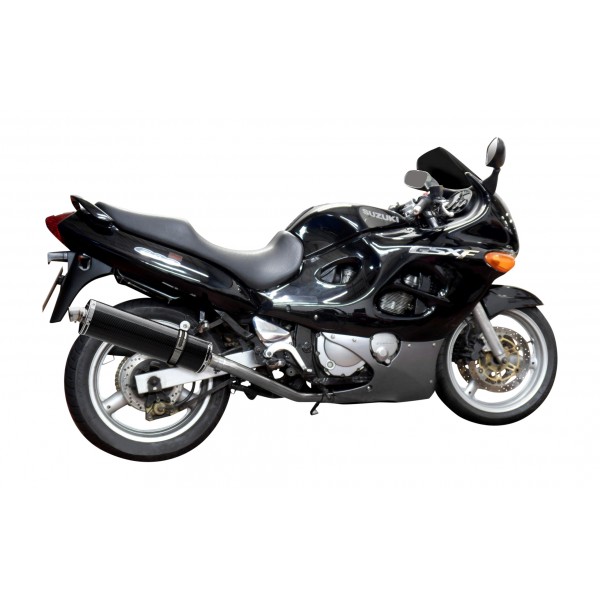 SUZUKI GSX750F SPORTS 1998-2006 450mm OVAL CARBON BSAU SILENCER EXHAUST KIT