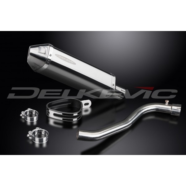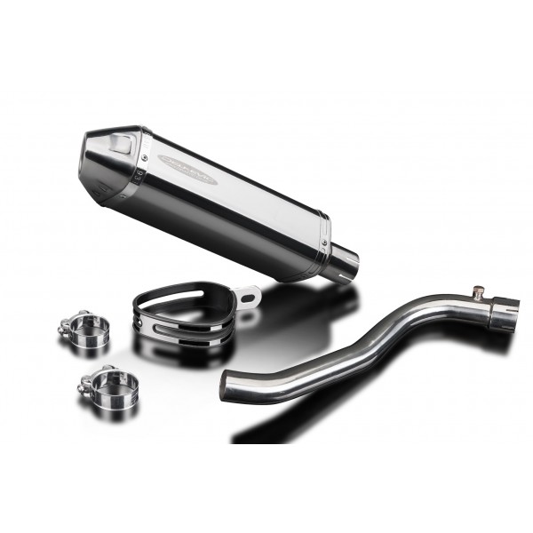 • This set includes - Delkevic silencer with a removable baffle, de-cat link pipe, strap, and clamps.