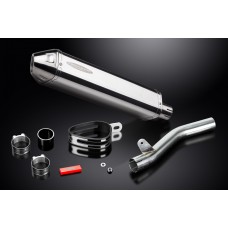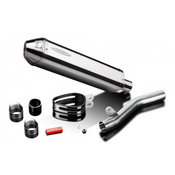 • This set includes - Delkevic silencer with a removable baffle, link pipe, strap, gasket, nyloc nut, washer, and clamps.
