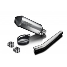 • This set includes - Delkevic silencer with a removable baffle, link pipe, clamps, and strap.