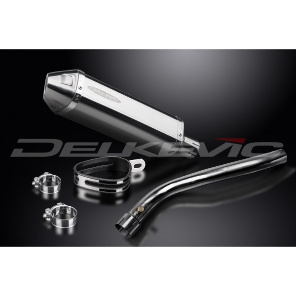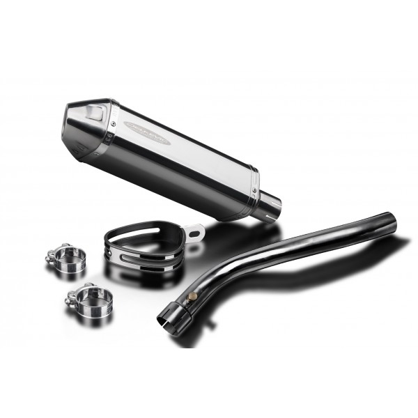 • This set includes - Delkevic silencer with a removable baffle, de-cat link pipe, strap, and clamps.