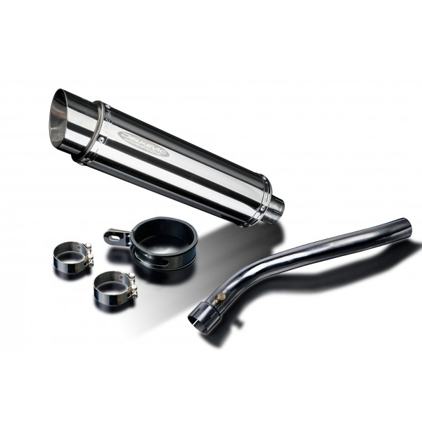 • This set includes - Delkevic silencer with a removable baffle, de-cat link pipe, strap, and clamps.