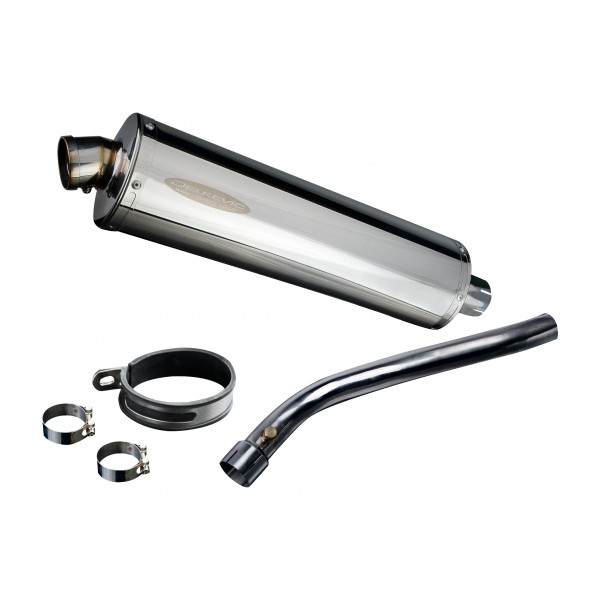 • This set includes - Delkevic silencer with a removable baffle, de-cat link pipe, strap, and clamps.