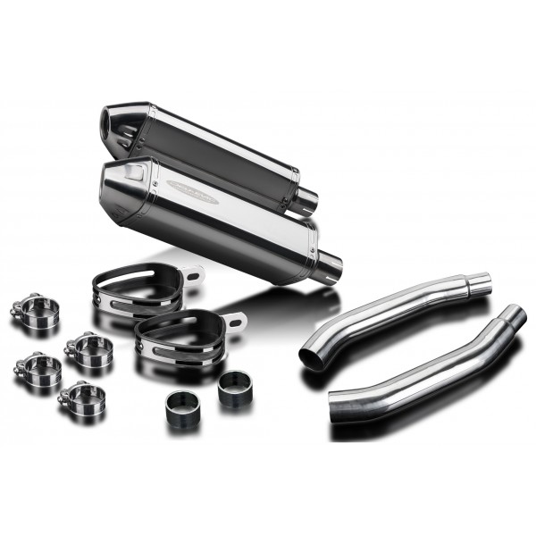 • This set includes - Delkevic silencers with removable baffles, link pipes, straps, clamps, gaskets, and fixings.