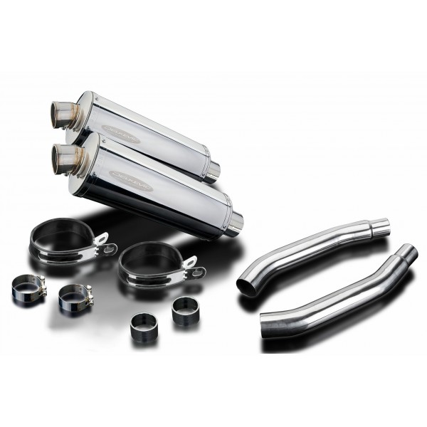 • This set includes - Delkevic silencers with removable baffles, link pipes, straps, clamps, gaskets, and fixings.