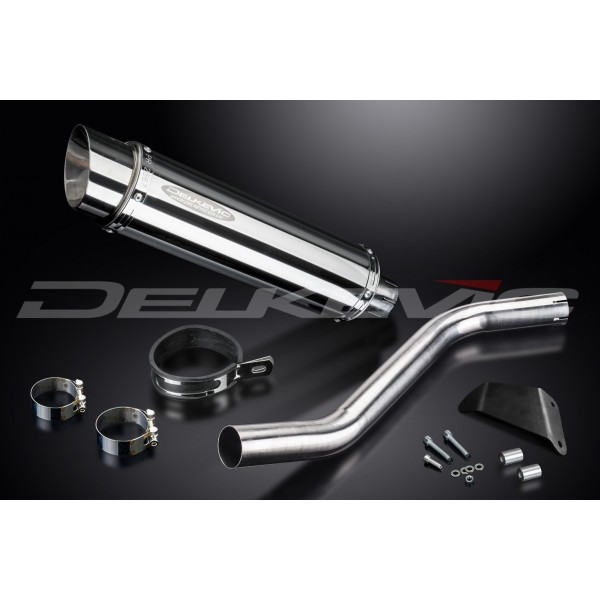 • This set includes - Delkevic silencer with a removable baffle, link pipe, strap, clamps, bracket, and fixings.